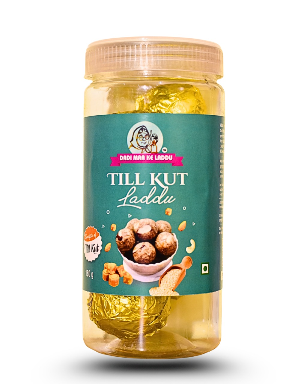Till Kut Laddu Jar with Jaggery, Cashews, Almonds, Gond & White Sesame Seeds | Healthy Traditional Indian Sweet Energy Bites | Nutritious Snack for Winter & Festivals